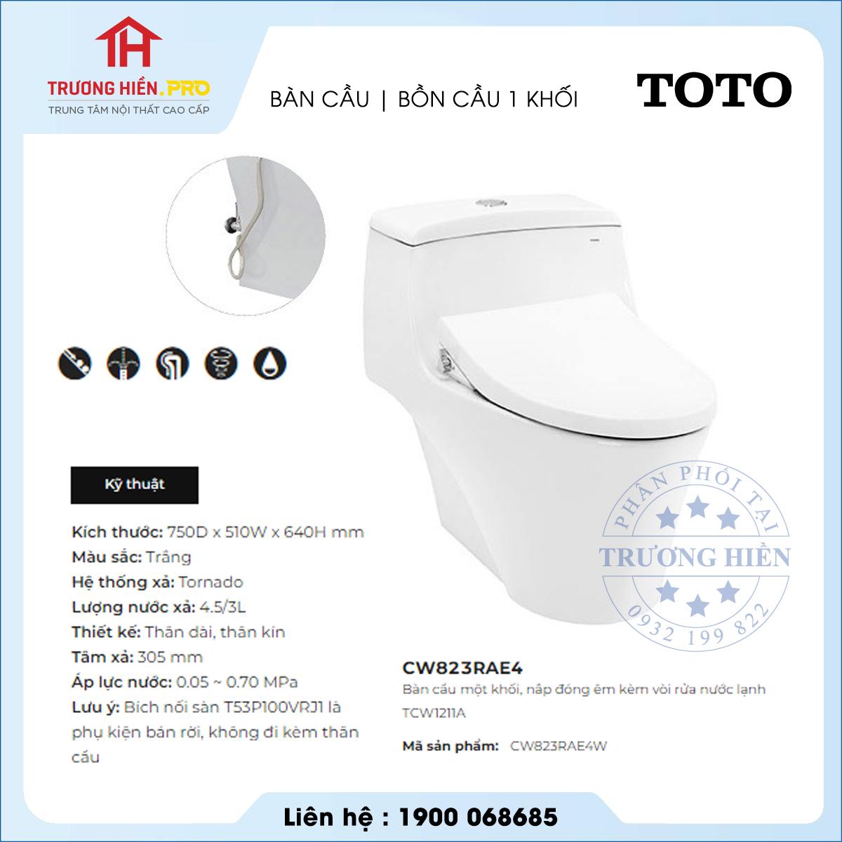 Thông tin cơ bản bồn cầu TOTO CW823RAE4 nắp rửa cơ