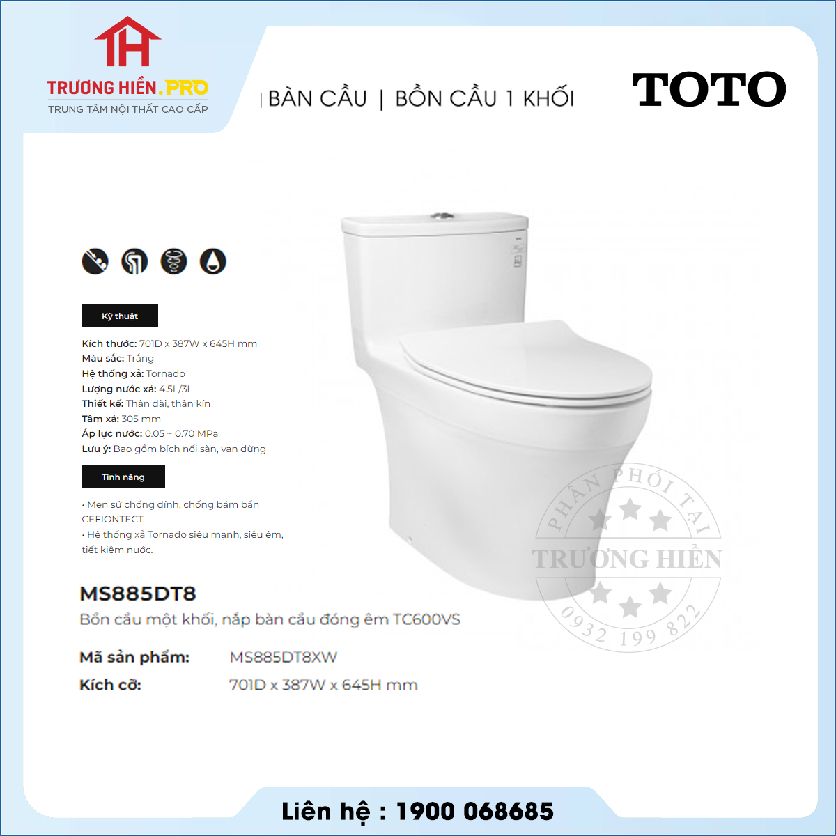 Bồn cầu 1 khối TOTO MS885DT8XW gồm có