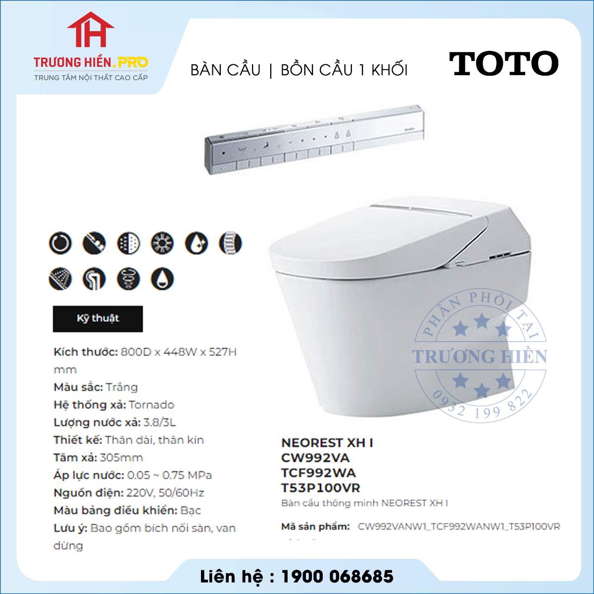 Thông số bồn cầu điện tử TOTO CW992VA + TCF992WA XH I
