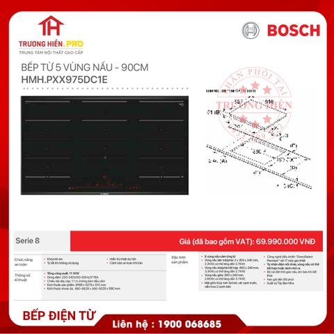 - Bếp điện từ Bosch đạt hiệu suất cao, công suất lớn, cho món ăn chín nhanh và đều. Bếp còn trang bị mâm nhiệt Ego hai vòng lửa giúp bếp có thể nấu được với tất cả kích thước nồi, không kén nồi.