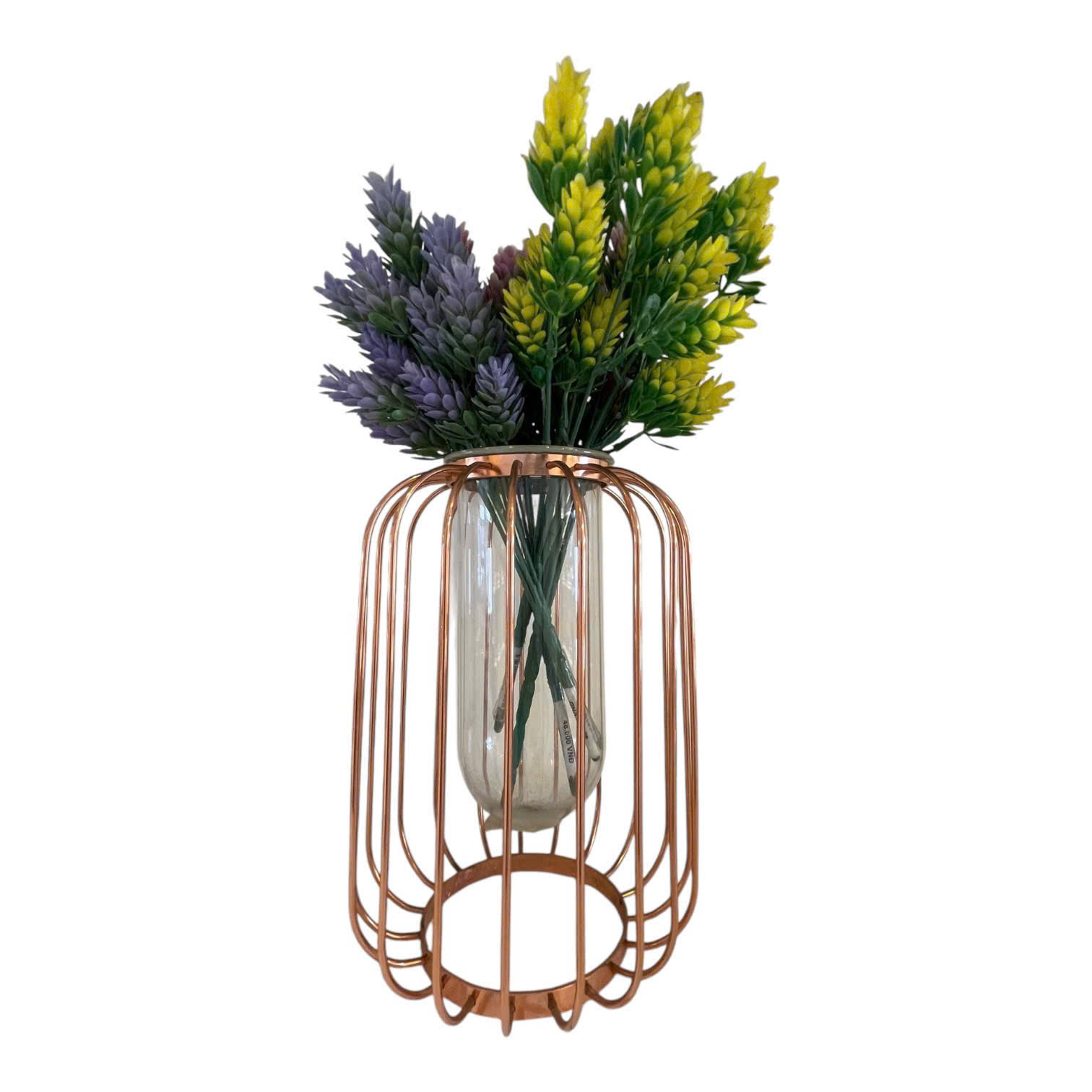 Bình hoa dáng lồng chim với thiết kế 2 lớp khung kim loại mảnh mai bao bọc lọ thủy tinh bên trong, mang đến vẻ đẹp lãng mạn, nhẹ nhàng như một chiếc lồng chim cổ tích. Sự kết hợp giữa chất liệu kim loại vàng hồng phối cùng thủy tinh trong suốt tạo nên điểm nhấn sang trọng, phù hợp với nhiều phong cách từ vintage đến hiện đại.