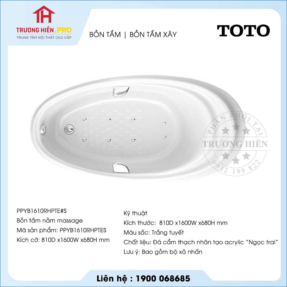 Thông tin cơ bản bồn tắm TOTO PPYB1610RHPTE#S