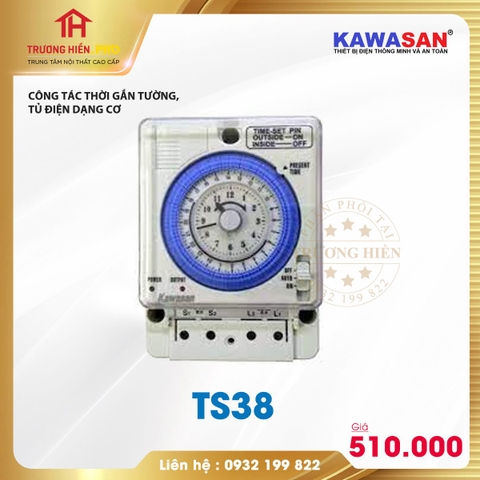- TS38 là công tắc hẹn giờ cơ, có thời gian đóng ngắt tối thiểu 15 phút/ nấc gạt.