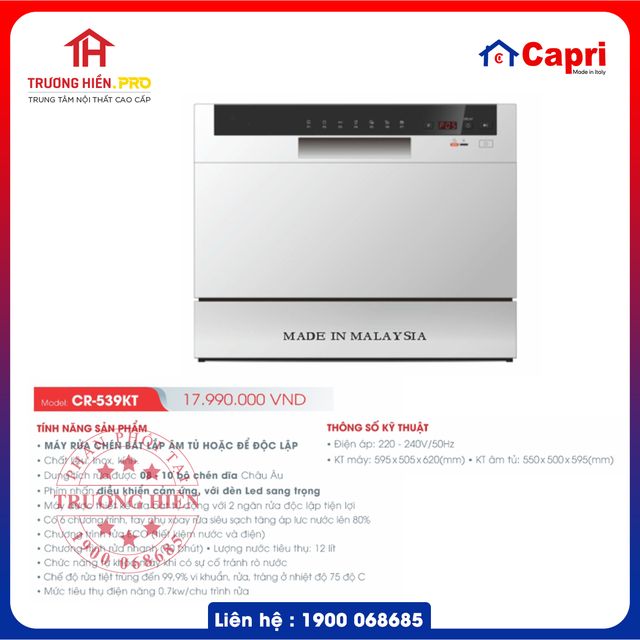 - Dung tích rửa được 08 - 10 bộ chén dĩa Châu Âu