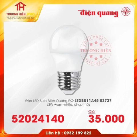 ĐÈN LED BULD ĐIỆN QUANG CÔNG SUẤT NHỎ ĐQ LEDBU11A45 3W 03727 CHỤP CẦU MỜ – SIÊU SÁNG, SIÊU TIẾT KIỆM