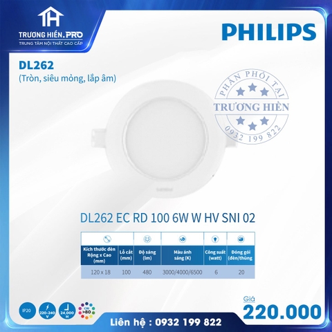 ĐÈN LED ÂM TRẦN PHILIPS DL262 - DL262 EC RD 100 6W W HV SNI 02 SIÊU MỎNG- THIẾT KẾ KHÔNG GIAN SỐNG HIỆN ĐẠI