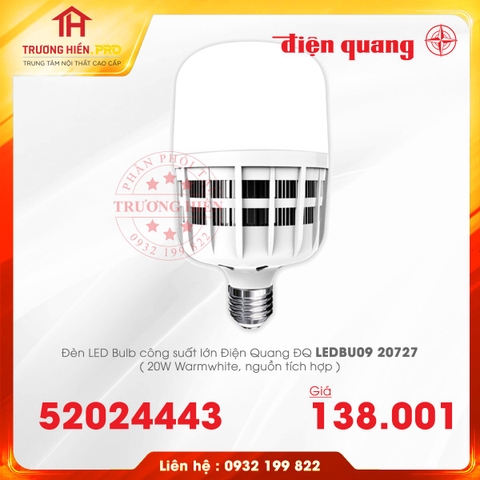 ĐÈN LED BULD ĐIỆN QUANG CÔNG SUẤT LỚN ĐQ LEDBU09 20727 20W NGUỒN TÍCH HỢP – GIẢI PHÁP THAY THẾ TỐI ƯU CHO ĐÈN COMPACT CÔNG SUẤT LỚN