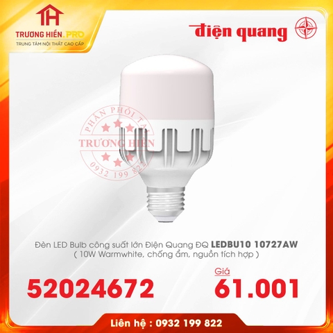 ĐÈN LED BULD ĐIỆN QUANG CÔNG SUẤT LỚN ĐQ LEDBU10 10727AW 10W CHỐNG ẨM, NGUỒN TÍCH HỢP – GIẢI PHÁP THAY THẾ TỐI ƯU CHO ĐÈN COMPACT CÔNG SUẤT LỚN
