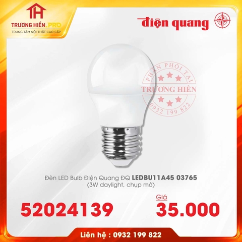 ĐÈN LED BULD ĐIỆN QUANG CÔNG SUẤT NHỎ ĐQ LEDBU11A45 3W 03765 CHỤP CẦU MỜ – SIÊU SÁNG, SIÊU TIẾT KIỆM