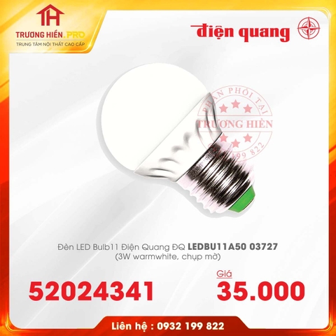 ĐÈN LED BULD ĐIỆN QUANG CÔNG SUẤT NHỎ ĐQ LEDBU11A50 03727 3W CHỤP MỜ – SIÊU SÁNG, SIÊU TIẾT KIỆM