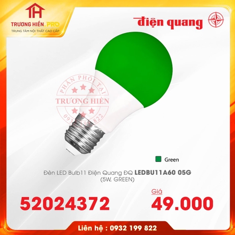 ĐÈN LED BULD ĐIỆN QUANG CÔNG SUẤT NHỎ ĐQ LEDBU11A60 05G 5W GREEN – SIÊU SÁNG, SIÊU TIẾT KIỆM