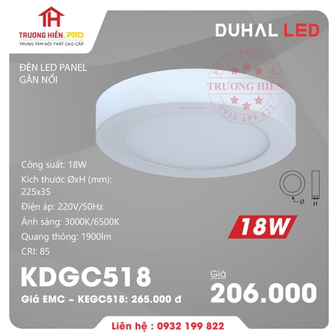 ĐÈN LED PANEL DUHAL GẮN NỔI TRÒN 18W KDGC518– TỰ HÀO ĐÈN LED VIỆT