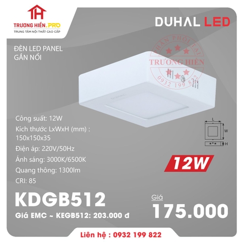 ĐÈN LED PANEL DUHAL GẮN NỔI VUÔNG 12W KDGB512 – TỰ HÀO ĐÈN LED VIỆT
