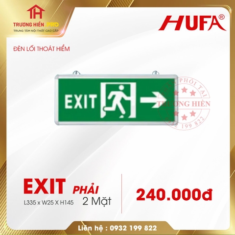ĐÈN LỐI THOÁT HIỂM 2 MẶT HUFA CÓ MŨI TÊN HƯỚNG PHẢI EXIT L355xW25xH145MM - GIẢI PHÁP CHIẾU SÁNG HIỆU QUẢ
