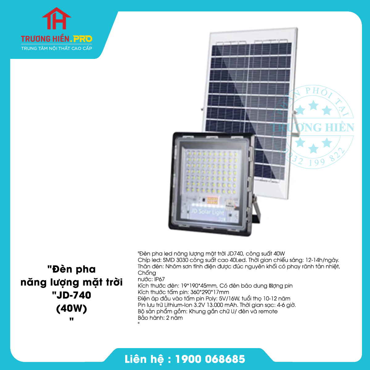 Đèn pha led năng lượng mặt trời JD740, công suất 40W