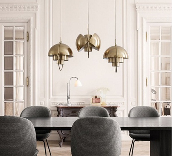 Ưu điểm: Dễ dàng phối hợp, tạo ánh sáng tập trung xuống bàn ăn, không chiếm nhiều diện tích thị giác.