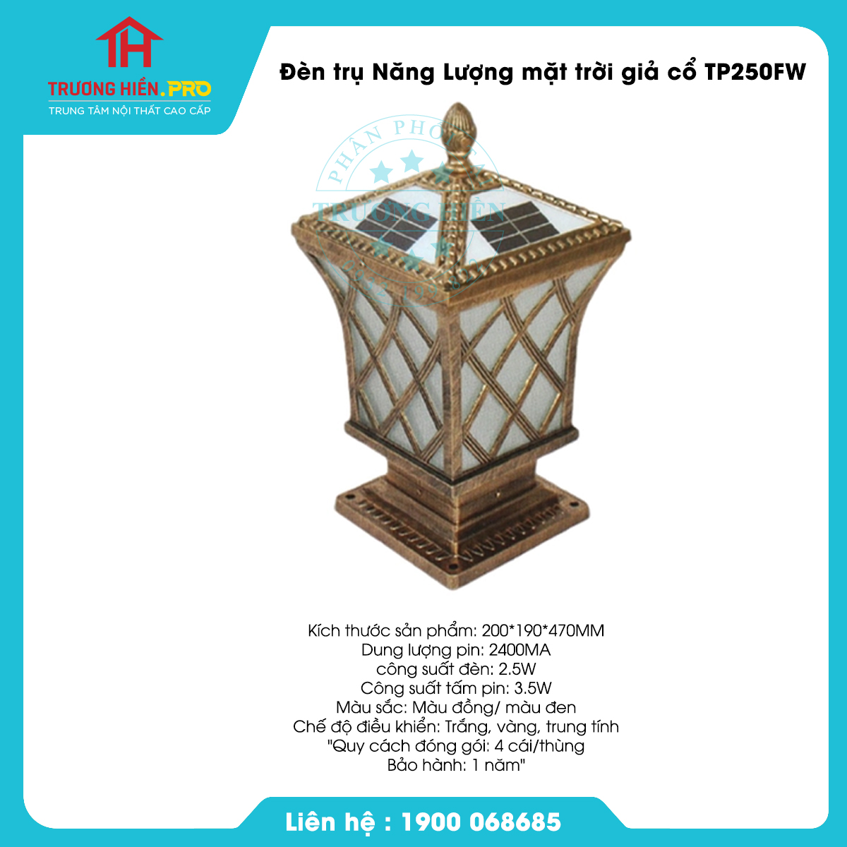 Đèn trụ cổng năng lượng mặt trời được cấu tạo bằng hợp kim sơn màu đen và mạ đồng rất đẹp mắt, chống gỉ sét, có hình dạng độc đáo, cổ kính. Đèn có thể lắp tại nhiều vị trí khác nhau giúp tôn vinh vẻ đẹp quyến rũ cho ngôi nhà.