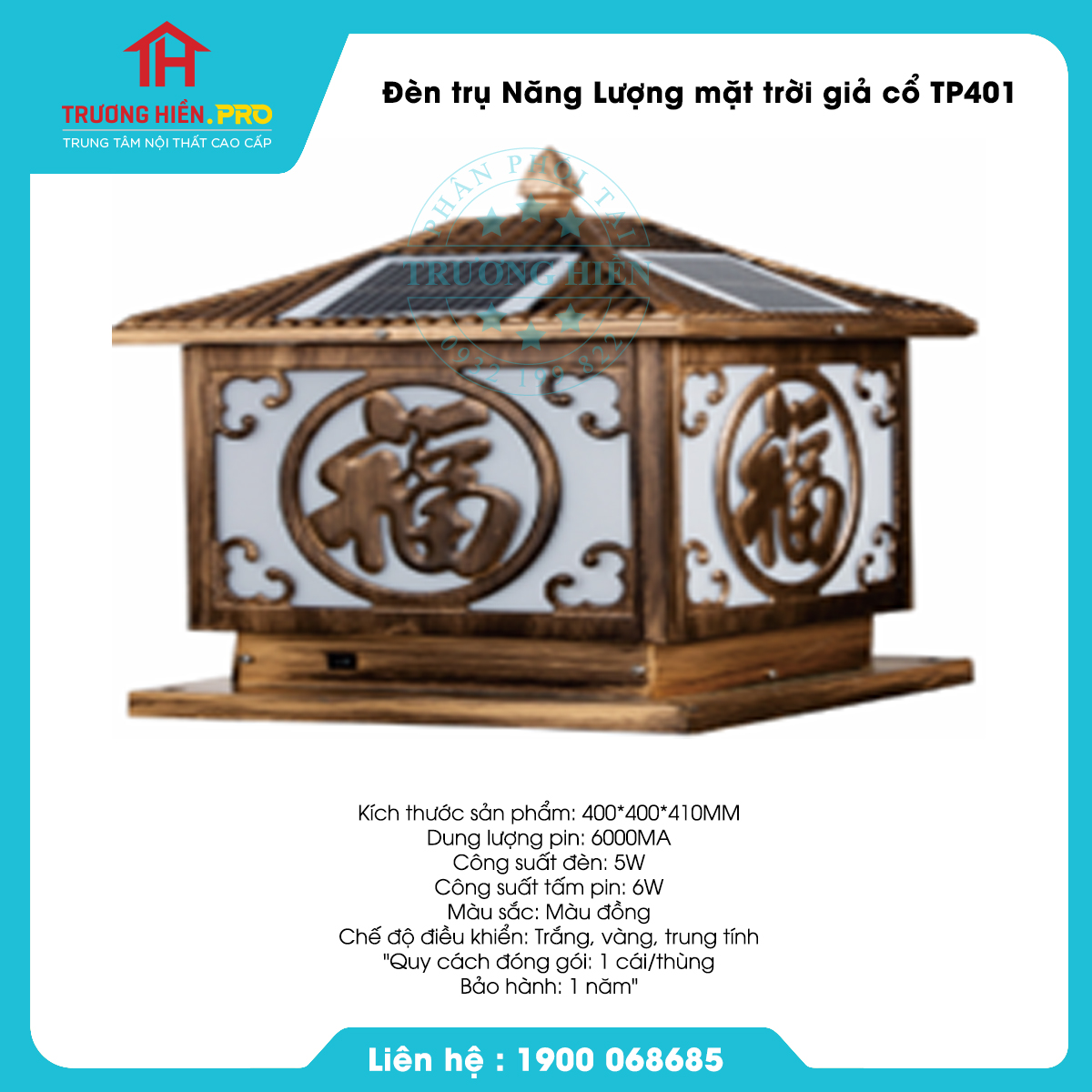 Đèn trụ Năng Lượng mặt trời giả cổ TP-401