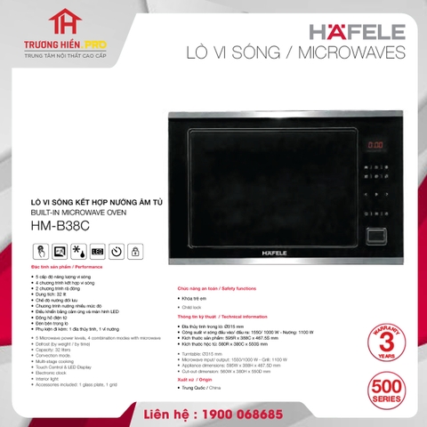LÒ VI SÓNG KẾT HỢP NƯỚNG ÂM TỦ HAFELE HM-B38C