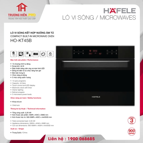 LÒ VI SÓNG KẾT HỢP NƯỚNG ÂM TỦ HAFELE HO-KT45B