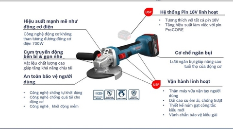 Máy mài góc dùng pin Bosch là dòng máy mài góc chạy pin rất được người sử dụng tin dùng bởi tính di động cao hơn, có thể làm việc được ở mọi vị trí xa nguồn điện mà máy mài chạy điện không đáp ứng được. Với thiết kế nhỏ gọn với trọng lượng nhẹ, người dùng thỏa mái sử dụng trong thời gian dài mà không mỏi tay. Ngoài ra, máy được sử dụng pin Ion Lithium có tuổi thọ lâu bền kết hợp với khả năng sạc pin nhanh chóng thuận tiện di chuyển, mang đi xa và có thể sử dụng trong thời gian dài. Tuy vậy, máy vẫn cho khả năng hoạt động mạnh mẽ và hỗ trợ mài nhẵn mối hàn, mài bề mặt kim loại phẳng mịn nhanh chóng.
