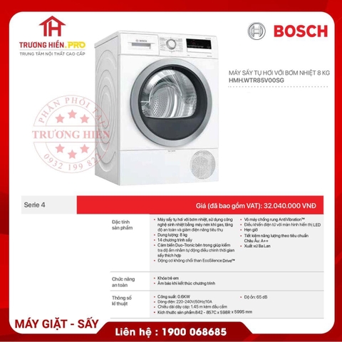 MÁY SẤY TỤ HƠI VỚI BƠM NHIỆT BOSCH WTR85V00SG