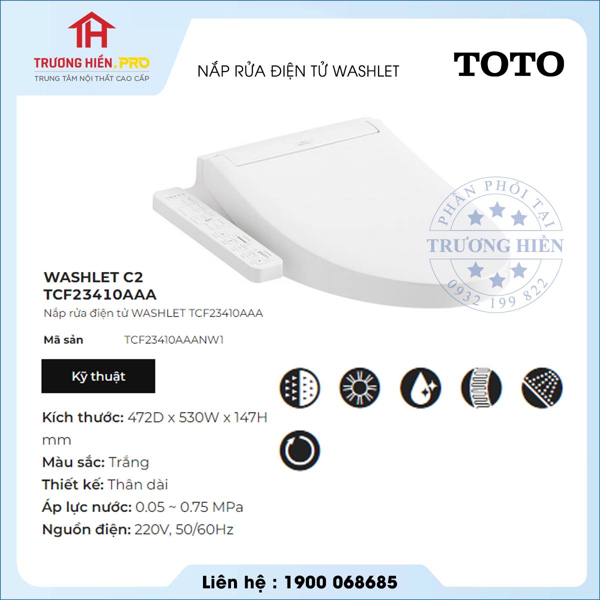 - Nắp rửa điện tử Washlet (220V) dòng C2 của thương hiệu thiết bị vệ sinh TOTO