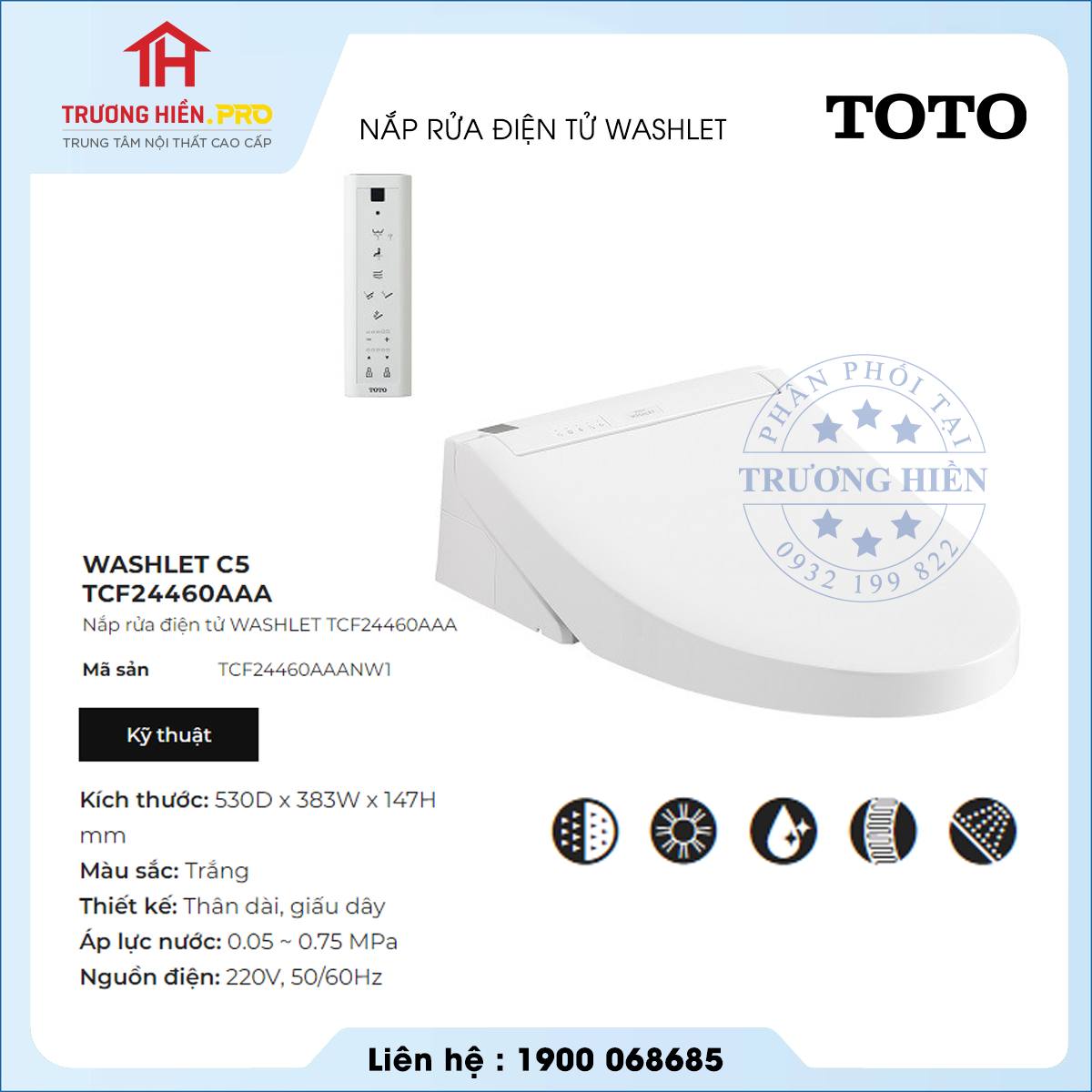 - Nắp rửa điện tử Washlet (220V) của thương hiệu thiết bị vệ sinh TOTO