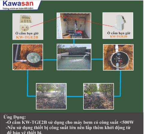 - Hẹn giờ bơm nước vào lúc nửa đêm (chú ý chỉ dùng trực tiếp cho bơm tối đa 300w, nếu lớn hơn phải qua bộ Khởi Động Từ)