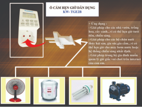 - Hẹn giờ cho các thiết bị gia đình như Tivi, Đầu Máy, Radio... (bởi vì khi tắt bằng remote thì nguồn điện vẫn còn, làm hao phí điện năng, tránh tình trạng cháy nổ khi có sấm xét, chập điện...)