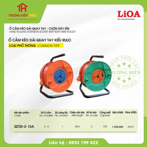 Ổ CẮM KÉO DÀI QUAY TAY LIOA KIỂU RULO 30M QT30 - 2 - 15A