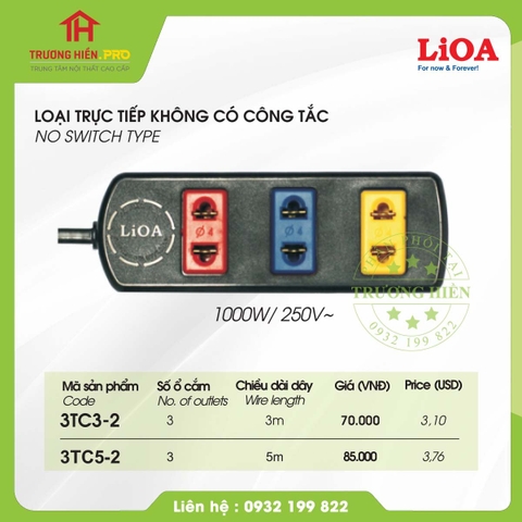 Ổ CẮM LIOA 3 LỖ 2 CHẤU DÂY 3M KHÔNG CÓ CÔNG TẮC MODEL 3TC3-2