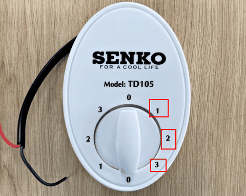 Bảng điều khiển của quạt chỉ gồm 1 núm vặn để điều chỉnh tốc độ quạt từ 1 - 3, trong đó 3 là tốc độ mạnh nhất, 0 là tắt quạt. Vì thế, việc sử dụng quạt đảo trần Senko TD105 không hề khó khăn, ngay cả với người dùng là người lớn tuổi.