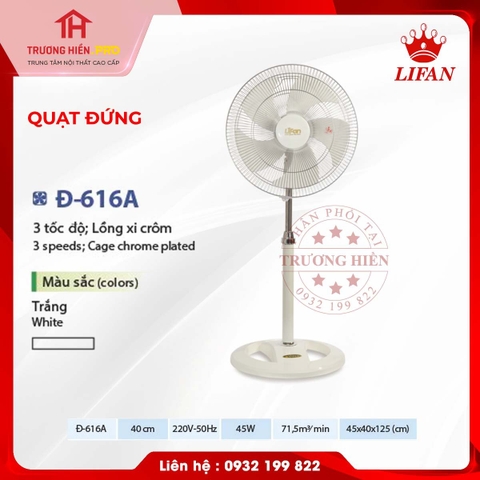 QUẠT ĐỨNG LIFAN Đ-616A (MÀU TRẮNG-LỒNG XI) - HÀNG VIỆT NAM CHẤT LƯỢNG CAO