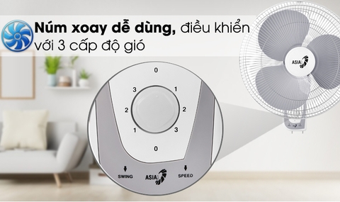 Quạt Asia hoạt động với chế độ gió thường mang đến sự thoải mái cho người sử dụng. Tiếp đó là 3 nút điều chỉnh tốc độ gió từ nhẹ đến mạnh, phục vụ nhu cầu làm mát của bạn ở mức thích hợp.