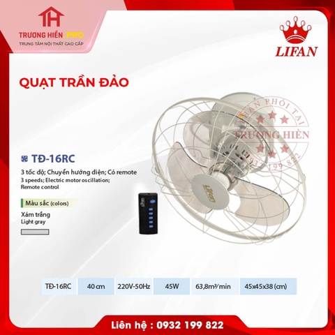 QUẠT TRẦN ĐẢO LIFAN TĐ-16RC REMOTE - HÀNG VIỆT NAM CHẤT LƯỢNG CAO