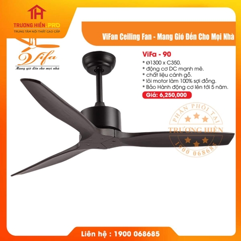 Quạt đèn VIFA hay còn gọi là quạt trần trang trí hiện là sản phẩm đang được khá nhiều gia đình Việt ưa thích và lựa chọn sử dụng. Cánh quạt được làm từ chất liệu cao cấp như gỗ, kim loại... cùng động cơ được sản xuất theo công nghệ mới nhất. Nhờ đó quạt luôn vận hành êm ái, tạo lưu lượng gió nhiều mà không hề gây tiếng ồn.