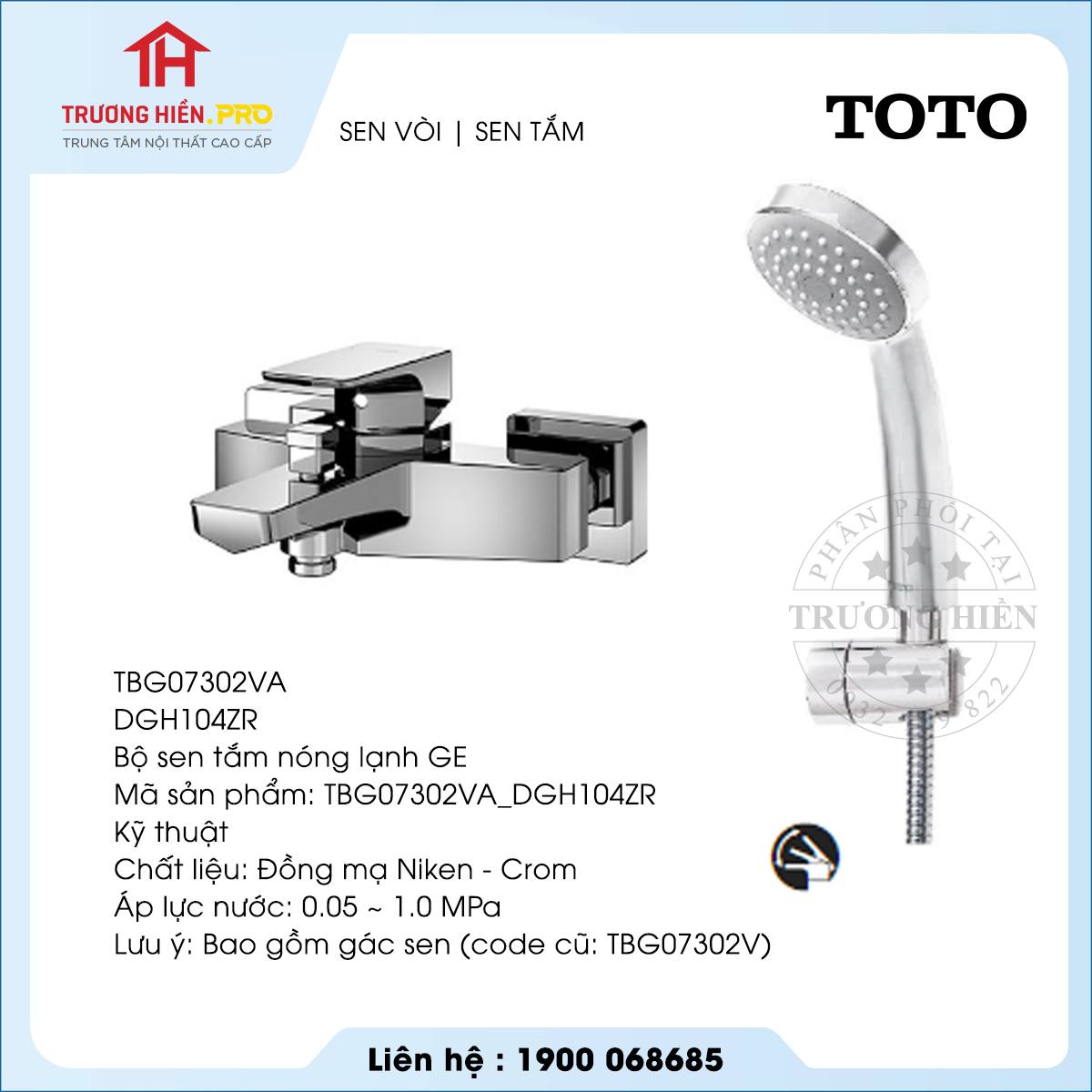 Thiết kế hiện đại hài hòa với dòng sản phẩm GE, thân van bằng đồng thau. Sen tắm TOTO nóng lạnh TBG07302V/DGH104ZR là bộ sen tắm kết hợp giữa củ sen TBG07302V hiện đại kiểu dáng khỏe khoắn và bát sen massage DGH104ZR mang đến cảm giác thoải mái cho người dùng, đây là sản phẩm hoàn hảo mà TOTO muốn đem đến gia đình bạn.