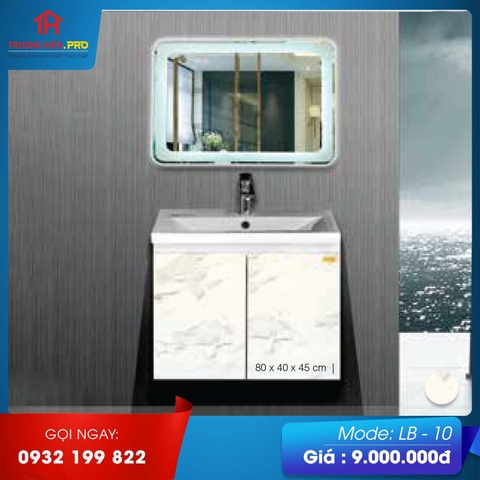 Bộ tủ chậu LB-10 có thiết kế hiện đại, thanh lịch với tông màu M5 làm chủ đạo. Mẫu tủ chậu này cũng gồm 3 bộ phận chính là gương soi, tủ đựng đồ, chậu rửa mặt. Bên ngoài chậu rửa mặt được viền lên cao giúp nước không bị bắn ra ngoài trong quá trình sử dụng. Tủ đựng đồ có diện tích rộng rãi có thể đựng nhiều đồ dùng tiện lợi, gọn hàng.