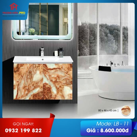 Bộ tủ chậu LB-11 có thiết kế hiện đại, thanh lịch với tông màu M3 làm chủ đạo. Mẫu tủ chậu này cũng gồm 3 bộ phận chính là gương soi, tủ đựng đồ, chậu rửa mặt. Bên ngoài chậu rửa mặt được viền lên cao giúp nước không bị bắn ra ngoài trong quá trình sử dụng. Tủ đựng đồ có diện tích rộng rãi có thể đựng nhiều đồ dùng tiện lợi, gọn hàng.