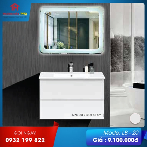 Bộ tủ chậu LB-20 có thiết kế hiện đại, thanh lịch với tông màu trắng làm chủ đạo. Mẫu tủ chậu này cũng gồm 3 bộ phận chính là gương soi, tủ đựng đồ, chậu rửa mặt. Bên ngoài chậu rửa mặt được viền lên cao giúp nước không bị bắn ra ngoài trong quá trình sử dụng. Tủ đựng đồ có diện tích rộng rãi có thể đựng nhiều đồ dùng tiện lợi, gọn hàng.