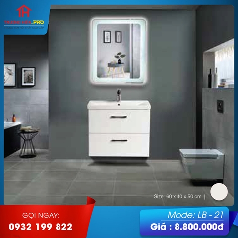 Bộ tủ chậu LB-21 có thiết kế hiện đại, thanh lịch với tông màu trắng làm chủ đạo. Mẫu tủ chậu này cũng gồm 3 bộ phận chính là gương soi, tủ đựng đồ, chậu rửa mặt. Bên ngoài chậu rửa mặt được viền lên cao giúp nước không bị bắn ra ngoài trong quá trình sử dụng. Tủ đựng đồ có diện tích rộng rãi có thể đựng nhiều đồ dùng tiện lợi, gọn hàng.