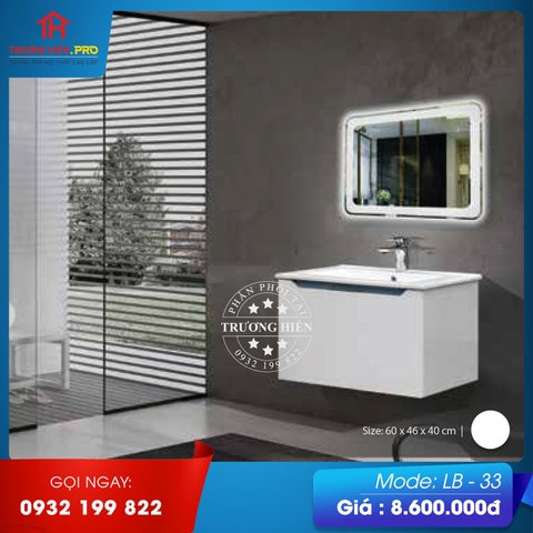 Bộ tủ chậu LB-33 có thiết kế hiện đại, thanh lịch với tông màu trắng làm chủ đạo. Mẫu tủ chậu này cũng gồm 3 bộ phận chính là gương soi, tủ đựng đồ, chậu rửa mặt. Bên ngoài chậu rửa mặt được viền lên cao giúp nước không bị bắn ra ngoài trong quá trình sử dụng. Tủ đựng đồ có diện tích rộng rãi có thể đựng nhiều đồ dùng tiện lợi, gọn hàng.