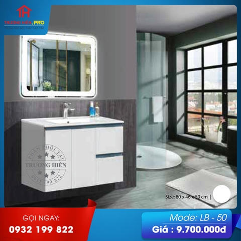 Bộ tủ chậu LB-50 có thiết kế hiện đại, thanh lịch với tông màu trắng làm chủ đạo. Mẫu tủ chậu này cũng gồm 3 bộ phận chính là gương soi, tủ đựng đồ, chậu rửa mặt. Bên ngoài chậu rửa mặt được viền lên cao giúp nước không bị bắn ra ngoài trong quá trình sử dụng. Tủ đựng đồ có diện tích rộng rãi có thể đựng nhiều đồ dùng tiện lợi, gọn hàng.