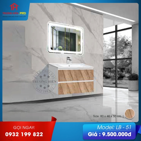Bộ tủ chậu LB-51 có thiết kế hiện đại, thanh lịch với tông màu M11 làm chủ đạo. Mẫu tủ chậu này cũng gồm 3 bộ phận chính là gương soi, tủ đựng đồ, chậu rửa mặt. Bên ngoài chậu rửa mặt được viền lên cao giúp nước không bị bắn ra ngoài trong quá trình sử dụng. Tủ đựng đồ có diện tích rộng rãi có thể đựng nhiều đồ dùng tiện lợi, gọn hàng.