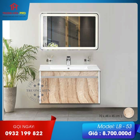 Bộ tủ chậu LB-53 có thiết kế hiện đại, thanh lịch với tông màu M12 làm chủ đạo. Mẫu tủ chậu này cũng gồm 3 bộ phận chính là gương soi, tủ đựng đồ, chậu rửa mặt. Bên ngoài chậu rửa mặt được viền lên cao giúp nước không bị bắn ra ngoài trong quá trình sử dụng. Tủ đựng đồ có diện tích rộng rãi có thể đựng nhiều đồ dùng tiện lợi, gọn hàng.