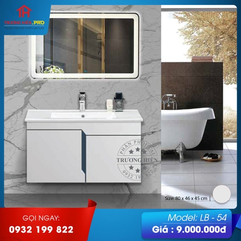 Bộ tủ chậu LB-54 có thiết kế hiện đại, thanh lịch với tông màu trắng làm chủ đạo. Mẫu tủ chậu này cũng gồm 3 bộ phận chính là gương soi, tủ đựng đồ, chậu rửa mặt. Bên ngoài chậu rửa mặt được viền lên cao giúp nước không bị bắn ra ngoài trong quá trình sử dụng. Tủ đựng đồ có diện tích rộng rãi có thể đựng nhiều đồ dùng tiện lợi, gọn hàng.