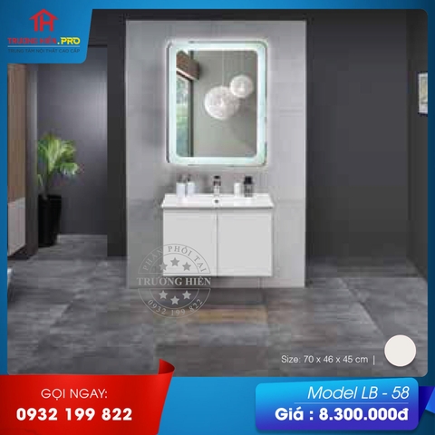 Bộ tủ chậu LB-58 có thiết kế hiện đại, thanh lịch với tông màu trắng làm chủ đạo. Mẫu tủ chậu này cũng gồm 3 bộ phận chính là gương soi, tủ đựng đồ, chậu rửa mặt. Bên ngoài chậu rửa mặt được viền lên cao giúp nước không bị bắn ra ngoài trong quá trình sử dụng. Tủ đựng đồ có diện tích rộng rãi có thể đựng nhiều đồ dùng tiện lợi, gọn hàng.
