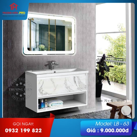 Bộ tủ chậu LB-63 có thiết kế hiện đại, thanh lịch với tông màu M2 làm chủ đạo. Mẫu tủ chậu này cũng gồm 3 bộ phận chính là gương soi, tủ đựng đồ, chậu rửa mặt. Bên ngoài chậu rửa mặt được viền lên cao giúp nước không bị bắn ra ngoài trong quá trình sử dụng. Tủ đựng đồ có diện tích rộng rãi có thể đựng nhiều đồ dùng tiện lợi, gọn hàng.