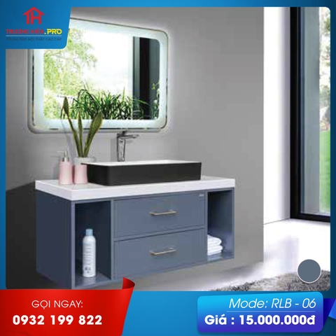 Bộ tủ chậu RLB-06 có thiết kế hiện đại, thanh lịch với tông màu xám nhạt làm chủ đạo. Mẫu tủ chậu này cũng gồm 3 bộ phận chính là gương soi, tủ đựng đồ, chậu rửa mặt. Bên ngoài chậu rửa mặt được viền lên cao giúp nước không bị bắn ra ngoài trong quá trình sử dụng. Tủ đựng đồ có diện tích rộng rãi có thể đựng nhiều đồ dùng tiện lợi, gọn hàng.